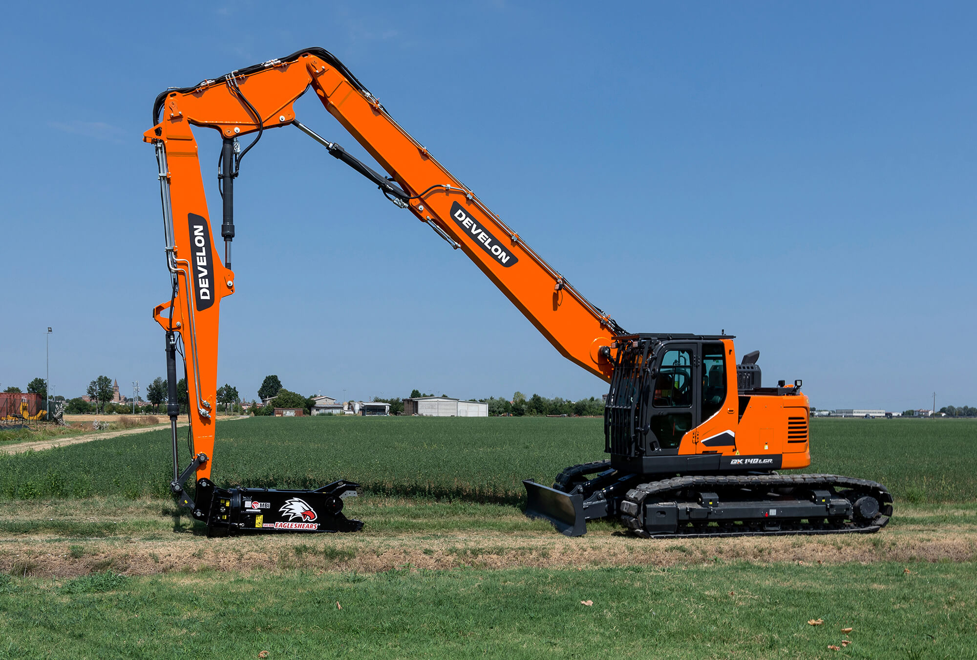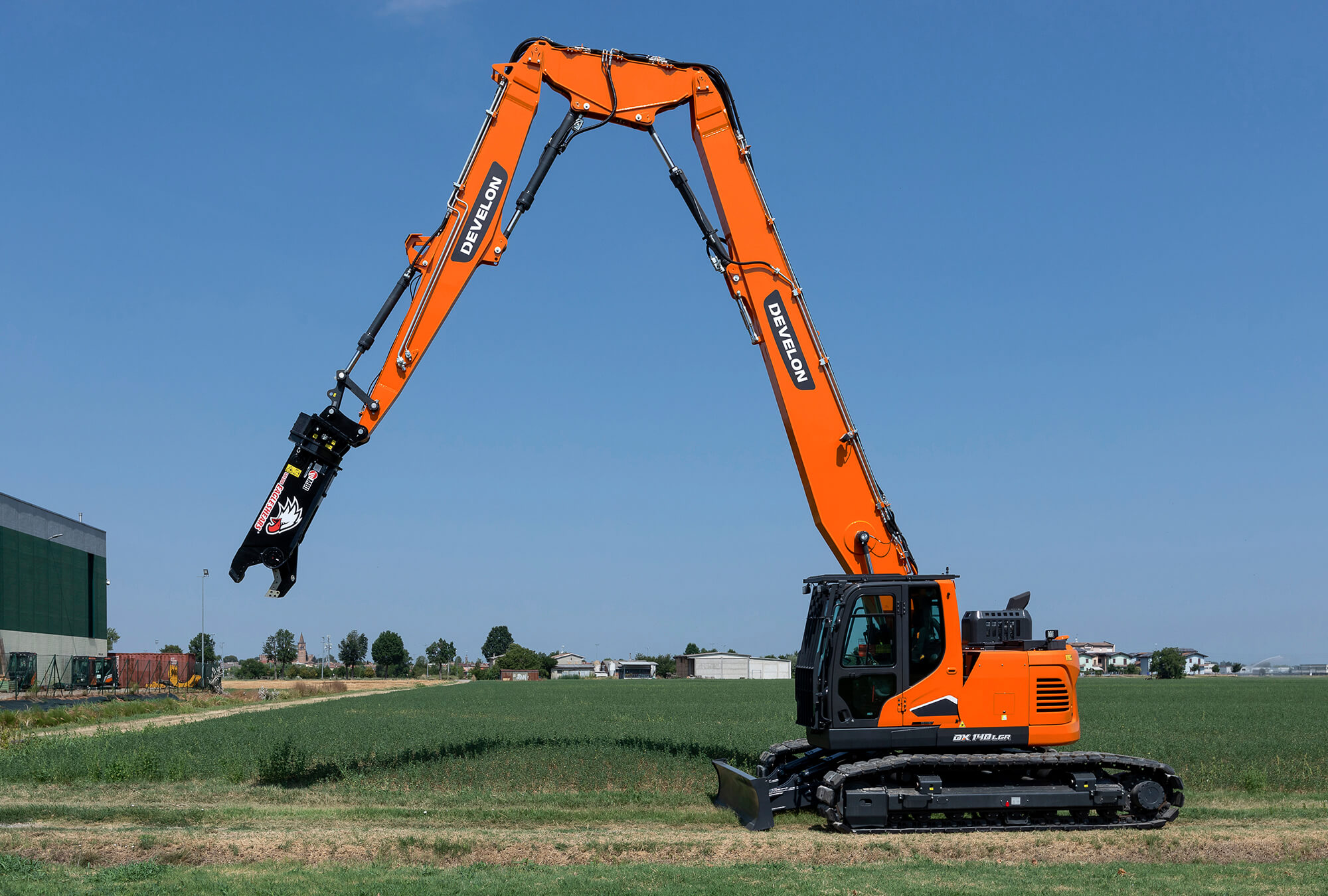 Der DX140RDM-7 kann entweder mit einem monolithischen Ausleger oder einem modularen Ausleger ausgestattet werden. Der hydraulische Verriegelungsmechanismus bietet eine flexible Komplettlösung. Damit lässt sich der Bagger schnell umrüsten – für Abbrucharbeiten oder für Einsätze auf der Baustelle.