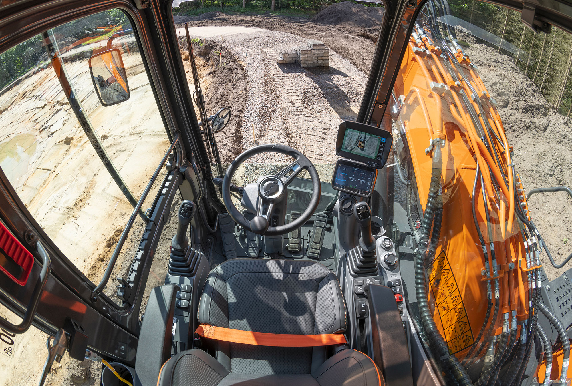 Der DX230WMH-7 hat zwei Löffelstielzylinder für zusätzliche Balance, bessere Standfestigkeit und ein besseres Bewegungsverhalten, wenn Anbaugeräte wie beispielsweise Greifer eingesetzt werden. Die maximale Bolzenhöhe beträgt 11,7 m, die maximale Arbeitsreichweite 10,1 m und die maximale Arbeitstiefe 4,2 m.