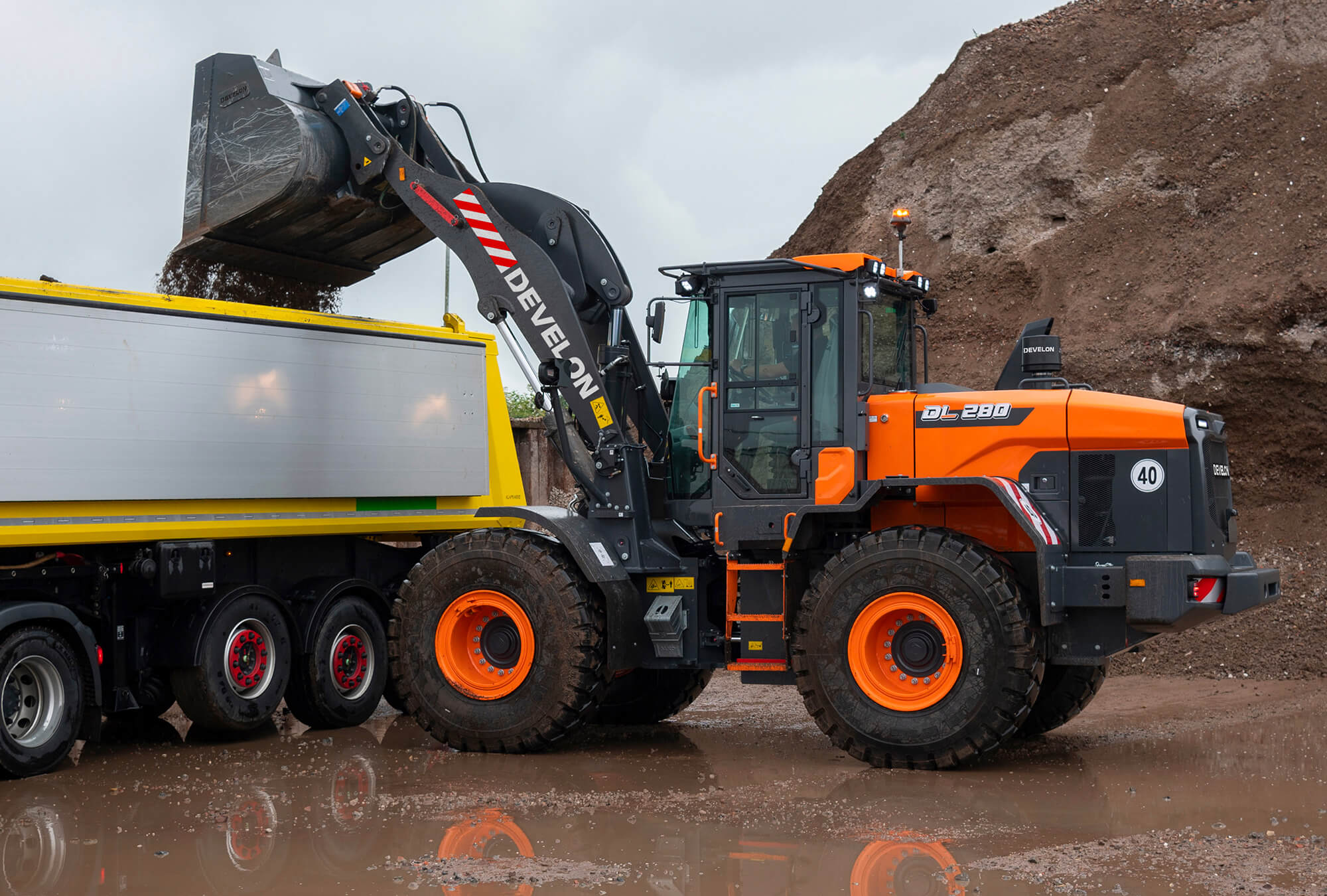Boost your productivity with the new DL280-7 Develon wheel loader. Exceptional power – combined with the finest workmanship – results in a machine that performs at the highest level.
