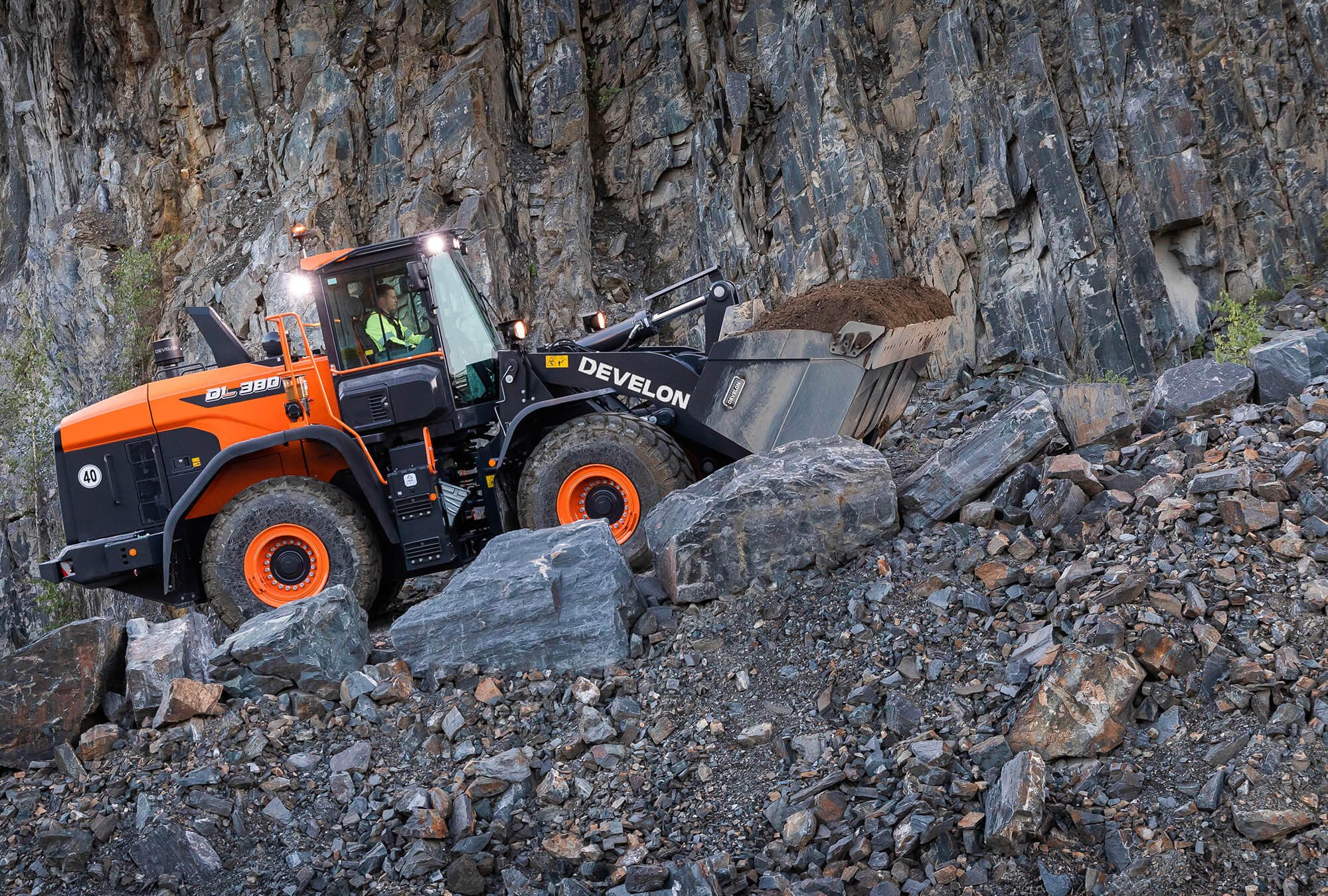Boost your productivity with the new DL380-7 Develon wheel loaders.