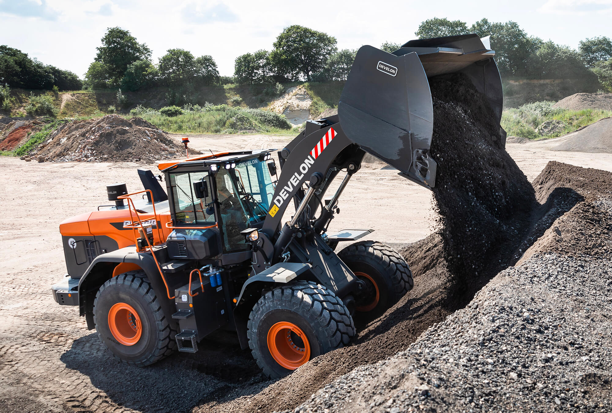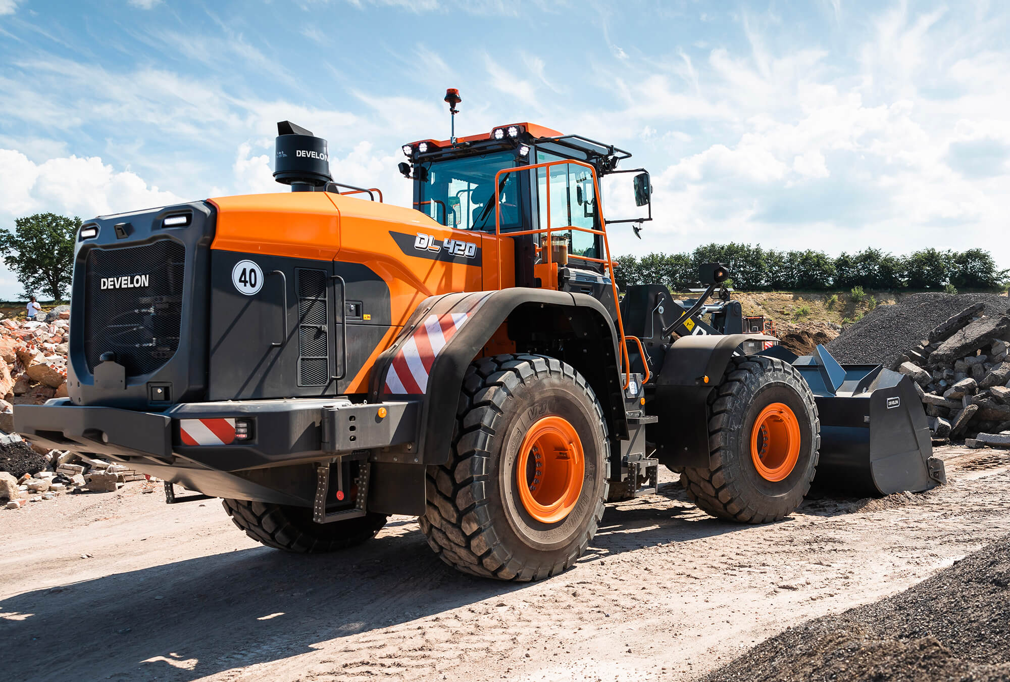 The DL420-7 introduces a fresh look for the Develon wheel loader range, with a brand new spacious, ergonomic cab and innovative features for higher productivity, increased controllability and operator comfort.