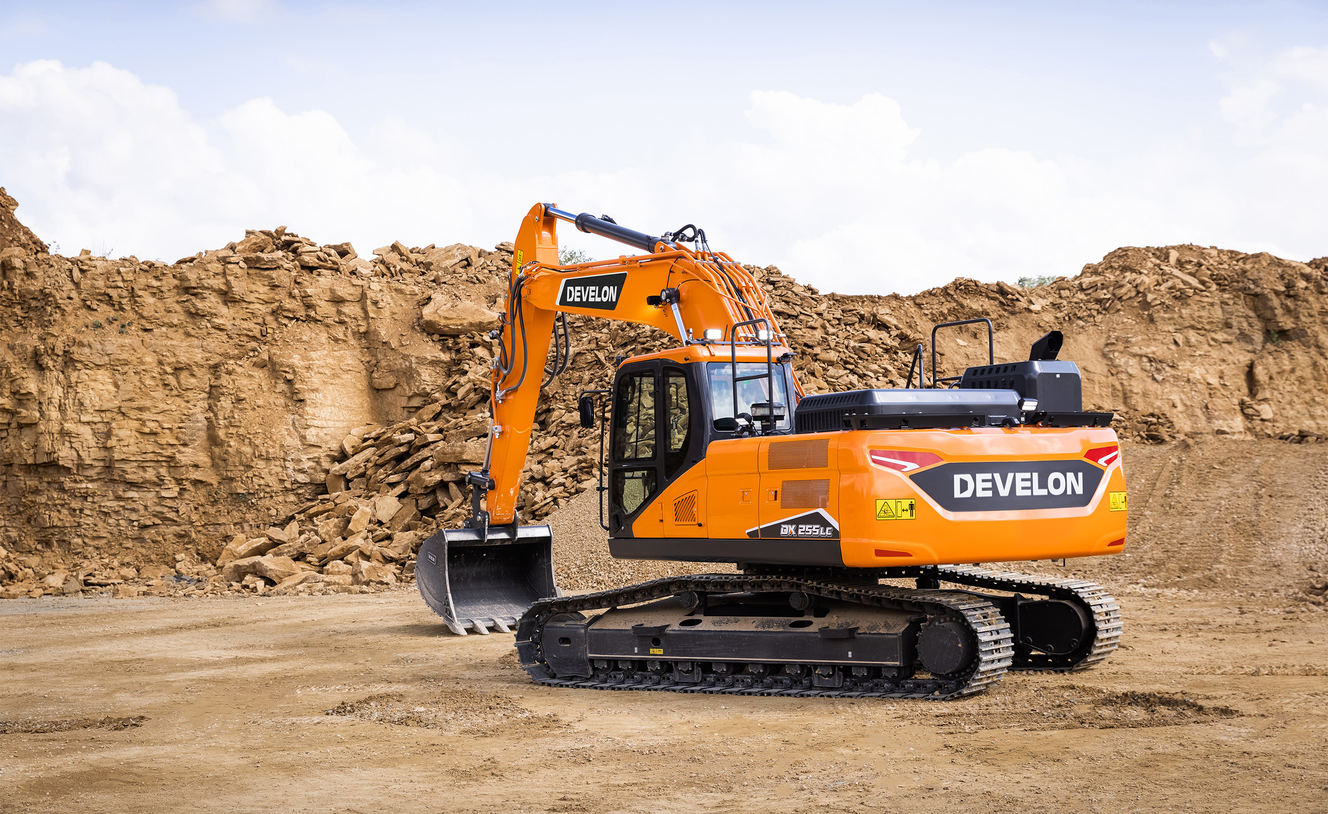 Reinforced castings and forged steel pivot points and reinforced heavy-duty arm and boom to withstand high-impact materials. Monoboom or articulated boom for added versatility. Improved hydraulic line routing to protect your investment. One of the most spacious cabs in the market, with low noise & vibration levels and excellent all-round visibility. Thanks to the heating and even an optional cooling functionality of the premium seat and improved air ventilation in the DX255LC-7, you can focus on the job at hand in any situation. The latest evolution of the legendary Stage V Develon DL06V engine achieves greater fuel savings thanks to D-Eco Power and the 3rd generation of Smart Power Control (SPC3) Take full control over your fuel consumption with the settable engine shut off.
