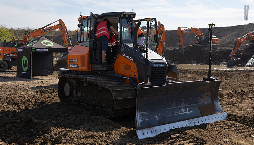Develon has entered the European dozer market with the launch of the new DD130-7 model, which was shown for the first time at Demo Days. One of the biggest differences between the DD130-7 and other dozer brands is the visibility the DD130-7 provides of the machine’s dozer blade. To facilitate this, the front engine compartment offers a narrower design and this is combined with several other features to make it easier for operators to see their work.
