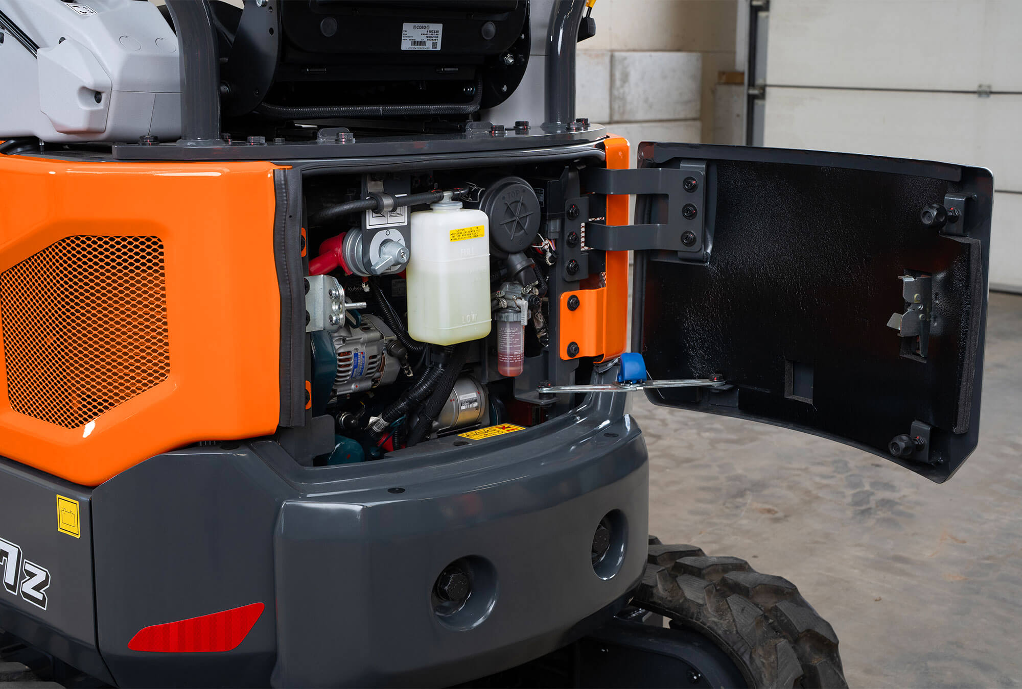 Experimente una mejora de la estabilidad y de la capacidad de elevación, acompañado por un caudal auxiliar proporcional de primer nivel, con la DX17z-7. Ofrece una versatilidad increíble en el manejo de varios implementos. Además, el concepto de giro de cabina cero garantiza la seguridad manteniendo de forma segura las esquinas delanteras de la estructura superior dentro de la corona de giro, ofreciendo la tranquilidad necesaria incluso en obras difíciles.
