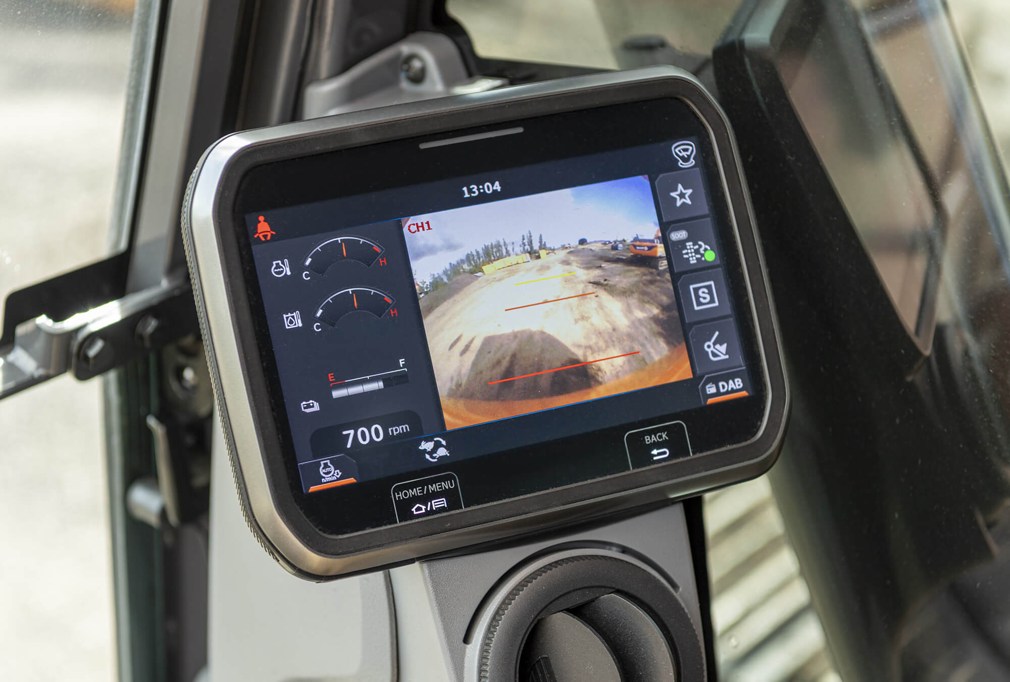 La DX250LCE-7 ofrece el mismo concepto de carga cómoda, adaptado a su mayor capacidad. Carga de CA de 380 V a 63 A durante aproximadamente 9 horas o con 32 A durante unas 18 horas, o elija carga rápida de CC en aproximadamente 2,5 horas para maximizar el tiempo de actividad. Una cabina ROPS presurizada de última generación, un asiento premium, la cámara AVM de 360° y la pantalla Develon Smart Touch crean unas condiciones de trabajo excepcionales. Los operadores se benefician de una excelente visibilidad, un control inteligente y un entorno cómodo, mientras que usted se beneficia de un funcionamiento seguro y eficiente, así como de una máquina que está lista para trabajar siempre que lo esté usted.