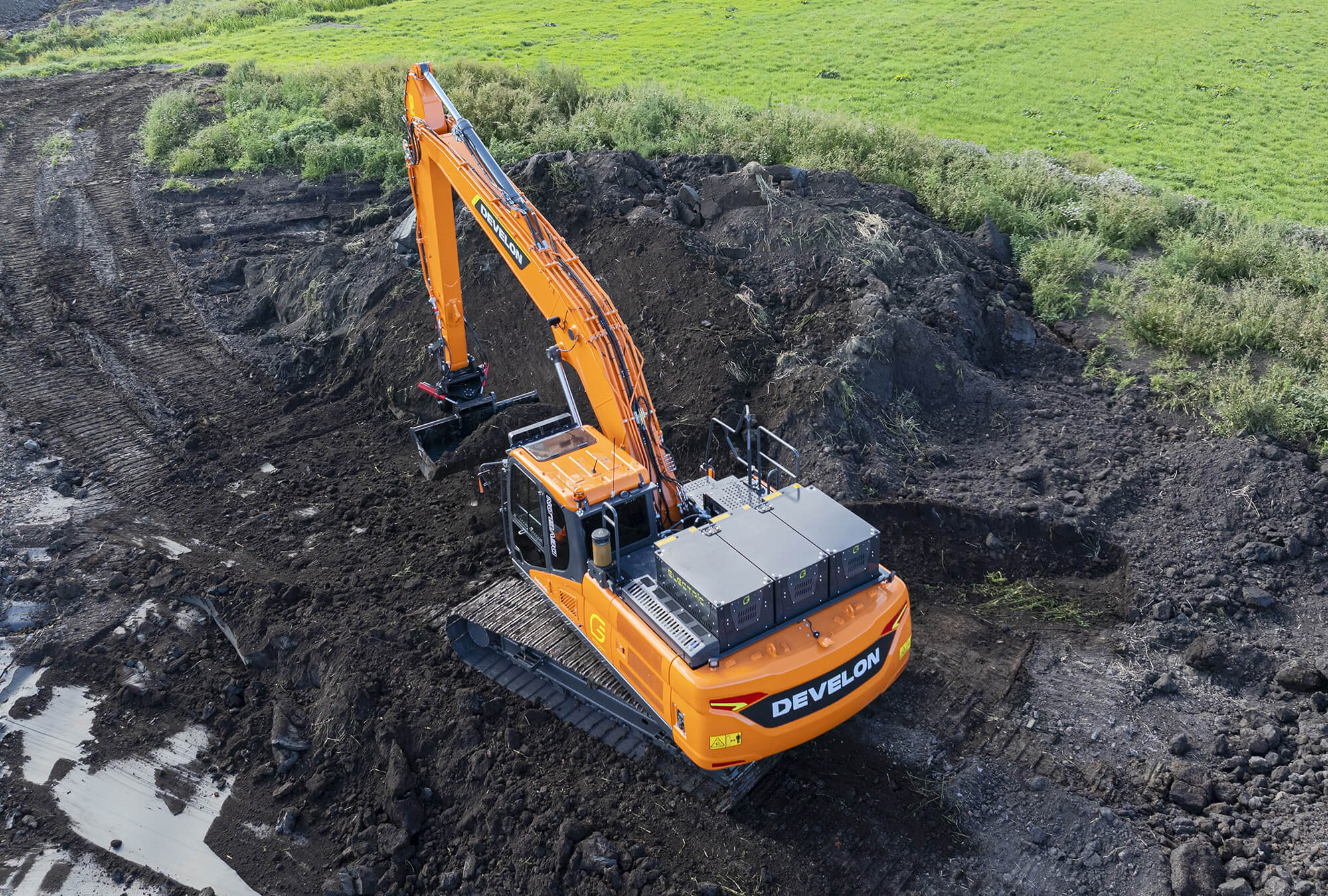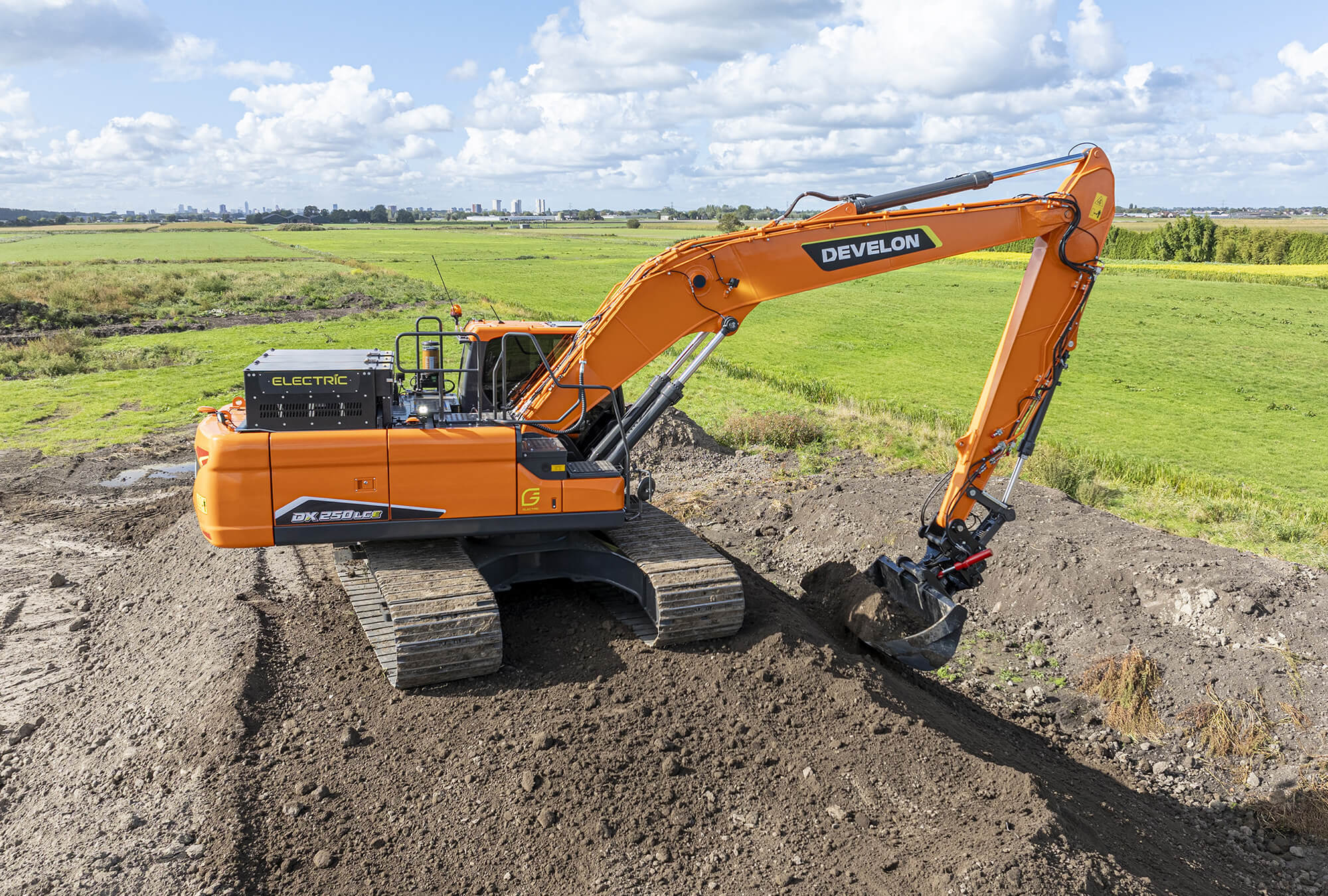 La DX250LCE-7 comparte el mismo motor de imán permanente de 120 kW refrigerado por líquido y tecnología de batería LFP, pero ofrece hasta 12 horas de autonomía para trabajos exigentes. Esta excavadora de orugas eléctrica de 28 toneladas iguala el rendimiento de su homóloga diésel, mientras funciona de manera mucho más silenciosa y sin emisiones locales. Con sus potentes sistemas hidráulicos, un giro preciso y la opción de pluma flotante inteligente, combina alta productividad con movimientos suaves y controlados. El resultado es una máquina silenciosa y sin emisiones que hace que su lugar de trabajo sea eficiente, sus operadores se sientan cómodos y sus costes operativos sean predecibles.